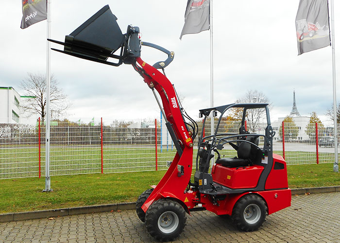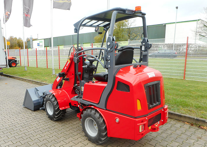 Alle Toyo Hoflader zeichnen sich durch eine kompakte Bauweise, einen niedrigen Schwerpunkt, geringen Wenderadius, kraftvolle Leistung und eine Vielzahl verschiedener Anbauwerkzeuge aus. Durch das Knickpendelgelenk haben alle vier Räder ständigen Bodenkontakt. So bewegt sich die Maschine mit maximaler Traktion und wird damit einzigartig wendig.