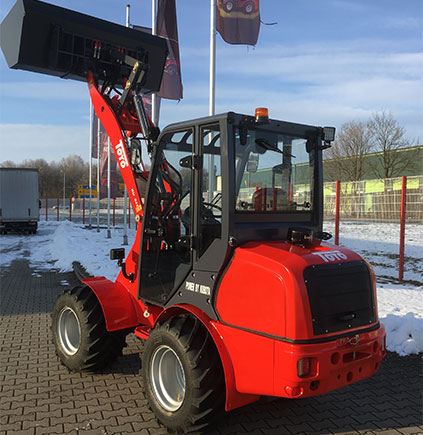 Hersteller: Kubota mit PartikelfilterMotortyp: D1803 EU Stage VAnzahl Zylinder: 3Max. Leistung: 27,6 kW / 37,5 PSbei U/min: 2.800Hubraum: 1.498 ccmKühlsystem: WasserkühlerLuftfilter: Donaldson Europe / Belgien Elektrische AnlageBetriebsspannung: 12 VoltBatterie: 70 AhLichtmaschine: 65AAnlasser: DENSO/Japan2x Arbeitsscheinwerfer vorne1x Arbeitsscheinwerfer hinten FahrzeugdatenGetriebe Hersteller: BONDIOLIAllradAntriebsart: hydrostatischGeschwindigkeit: 0 – 10 km/h (1.Stufe), 0 – 21 km/h (2.Stufe)Fahrstufen: 2Fahrantrieb: GelenkwelleTankvolumen: 45LiterHydrauliköl: 40 LiterHubhöhe am Drehpunkt: 3.040 mmMax. Hubhöhe/Schaufelhöhe gerade: 2.715mm GewichteBetriebsgewicht: 2.500 kgMax. Hubkraft: 2.000 kgKipplast gerade: 1.600 kgKipplast geknickt: 1.050 kg HydraulikHydraulik Hersteller: BUCHERHydraulische Bremsanlage Hydraulische LenkungFahrhydraulikFördermenge: 90 Ltr./minArbeitsdruck: 380 bar ArbeitshydraulikFördermenge: 50 Ltr./minArbeitsdruck: 180 bar Abmessungen / GewichtLänge mit Schaufel: 4.590 mmLänge ohne Schaufel: 3.670 mmRadstand: 1.690 mmGesamthöhe: 2.300 mmSitzhöhe: 1.320 mmMax. Arbeitsbreite: 1.590 mmSpurbreite bei Bereifung 19.00/45-17 : 1.110 mmBodenfreiheit: 250 mmWendekreis außen: 3.175 mmWendekreis innen: 1.428 mmKnickwinkel: 45° KabineVollverglastHeizung und LüftungTüröffnung 180° mit RastfunktionHeckscheibe ausstellbarScheibenwischer vorneScheibenwischer hinten SonstigesHydraulischer Euro Schnellwechsler der Werkzeuge3. + 4. Steuerkreis am HubarmAnhängerkupplungKomfortsitze mit Armlehnen CTRSicherheitsgurtBetriebsstundenzählerTankanzeigeTemperaturanzeigeAnbaugeräte / ZubehörSerienausstattungSchaufelPalettengabel OptionenZum ZubehörBallenspießRundballengreiferMultifunktionsballenträgerQuaderballengreiferGummischiebeschildErdbohrerStalldunggabelSilogreiferschaufelMultifunktionsschaufel 4 in 1SchneeschildKehrmaschineSerienausstattungAntriebHydrostatischer FahrantriebAllradantriebVerteilergetriebe und Gelenkwelle2 Fahrgeschwindigkeiten Hydraulik / GetriebeEinhandsteuerung mit SchwimmstellungMultifunktionshebelFahrtrichtungsschalter am MultifunktionshebelHydraulikölkühlerHydraulikanschluss vorne 2x BG3Hydraulisches Schnellwechselsystem für ArbeitswerkzeugeVollhydraulische Knickpendellenkung3. Steuerkreis (Hydraulikkreislauf)Brems-Inch-PedalHandfeststellbremse FahrerplattformKomfort-Glaskabine mit Heizung und LüftungScheibenwischer vorne und hintenAusstellbare HeckscheibeRückspiegelFahrerstand kippbarKomfortsitz EM8 mit Sicherheitsgurt und ArmlehnenVerstellbare LenksäuleArbeitsscheinwerfer vorne und hintenBeleuchtungsanlage (Scheinwerfer + Blinker)RundumleuchteKraftstoffanzeigeBetriebsstundenzählerKombiinstrument mit BeleuchtungTemperaturanzeige Bereifung19.00/45-17 SonstigesAnhängerkupplungTÜV-Gutachten für Straßenzulassung (optional)BatterietrennschalterSchaufelPalettengabel Mehrausstattungen4. Steuerkreis3. und 4. Funktion auf JoystickRundumleuchte LED nach STVOSTVO-Kit mit Betriebserlaubnis (DE)Satz (2 Stück) Schneeketten (Netzkette)KomponentenZUVERLÄSSIGDie Hydrauliksteuerung von Bucher Hydraulics garantiert eine lange Lebensdauer und ein sicheres, störungsfreies Arbeiten. KOMFORTABELBesonderen Komfort bietet der hydrostatische Fahrantrieb von den Antriebsprofis Bondioli & Pavesi, einem der Marktführer aus Italien. Die extrem hochwertigen Achsialkolbenpumpen von Bondioli & Pavesi in Verbindung mit den besten Motoren von Kubota garantieren Kraft über viele Jahre. Mit dem Wippschalter auf dem Joystick kann man die Fahrtrichtung wählen und bequem gleichzeitig heben, senken oder lenken. Ein fließender Arbeitsablauf wird somit ermöglicht. STARKKompakt, leistungsstark und zuverlässig. Alle Toyo Hoflader sind mit Original Kubota Motoren der neuesten Generation ausgestattet. Kubota ist einer der weltweit größten Anbieter von kompakten Dieselmotoren. UmweltDer D1105 entspricht den EPA Tier 4 Abgasvorschriften. Dies sind die international strengsten Abgasvorschriften in dieser Klasse. KontinuitätDie 05-Serie ist in ihrer Leistungsklasse anerkannt führend und wird von vielen namhaften Herstellern von Industrieausrüstung als Antriebsquelle eingesetzt.Der D1105 bietet einen nahtlosen Übergang von Tier 2 zu Tier 4, da er dieselben kompakten Abmessungen und Montagepunkte bei nur geringfügig geänderter Leistung im Vergleich zum Tier 2 Motor aufweist. Technischer VorsprungKubotas ursprüngliches E-TVCS (Ecology-Three Vortex Combustion System/Dreiwirbel-Verbrennungssystem) wurde verbessert. Luftführung, Brennraum und Kolbenausführung wurden optimiert, um den Partikelausstoß (PM) in dieser Motorklasse um beachtliche 50 % zu reduzieren – das entspricht derselben strikten Abgasbegrenzung wie bei Motoren oberhalb der 37 kW Klasse (EPA Interim Tier 4).