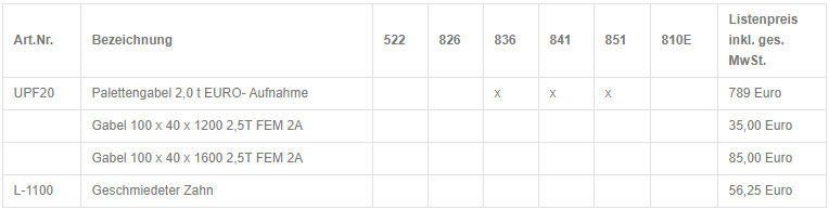 Standardmäßig Gabel 100x40x1200 2,5 T Blank